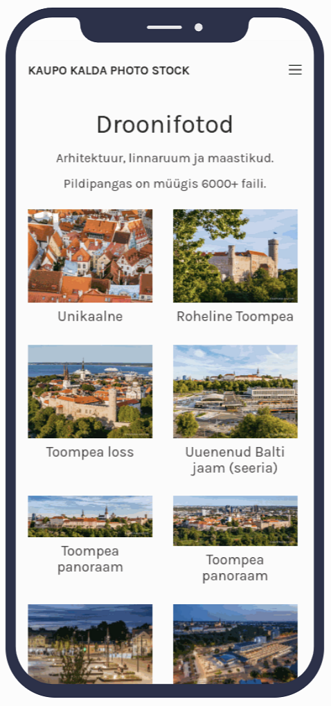 Kui eelmine näitas pilte kehvasti, siis selle lahenduse mobiiliveeb on ideaalne. Väga oluline, kuna enamus mu külastusi on mobiilist, seega "mobile first" põhimõte on siin oluline.